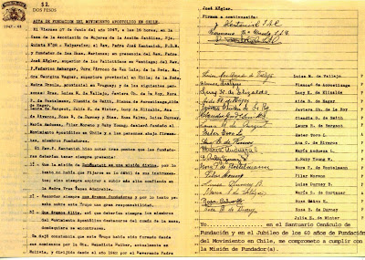 fundado el Movimiento Apostólico en Chile y las personas nombradas